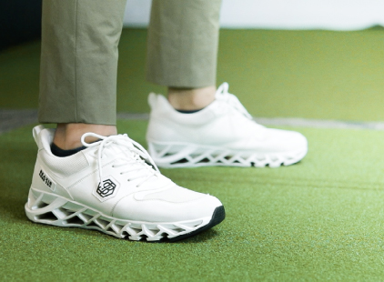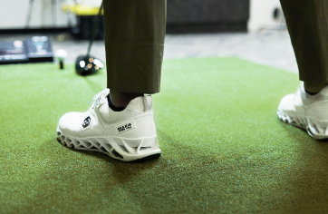 バランスコアターフもいいですね。通常、練習時とコース上でのスイングには多少差が生じるものですが、これを履いてプレーするとその差が縮まるように感じます。バランスコアシリーズは履くだけで「重心のコントロール」や「地面反力」が身につくよう設計されているので、自然とどんなシーンでもベストなパフォーマンスが出せるのかもしれないですね。