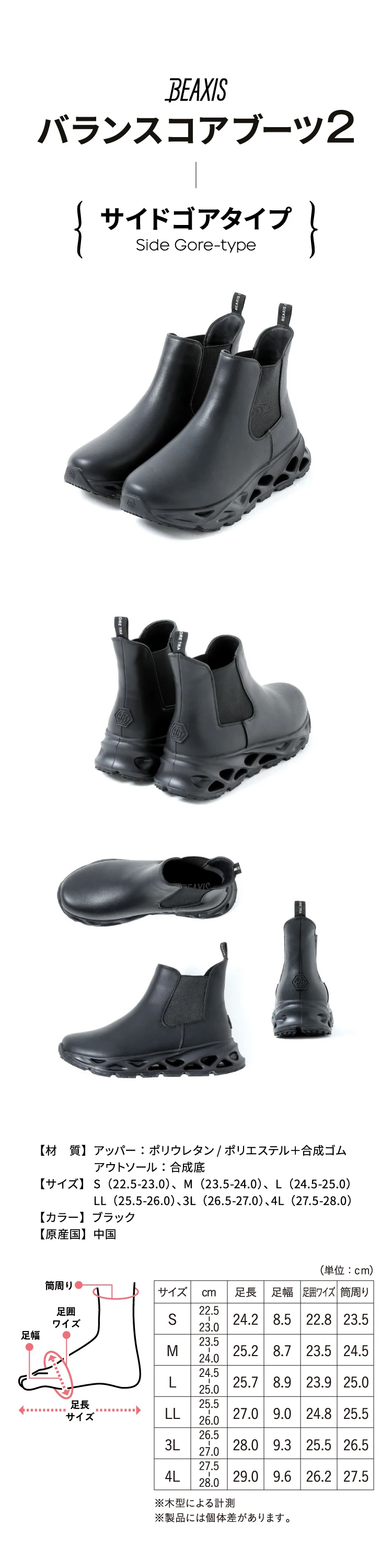 整体サイドゴアブーツ